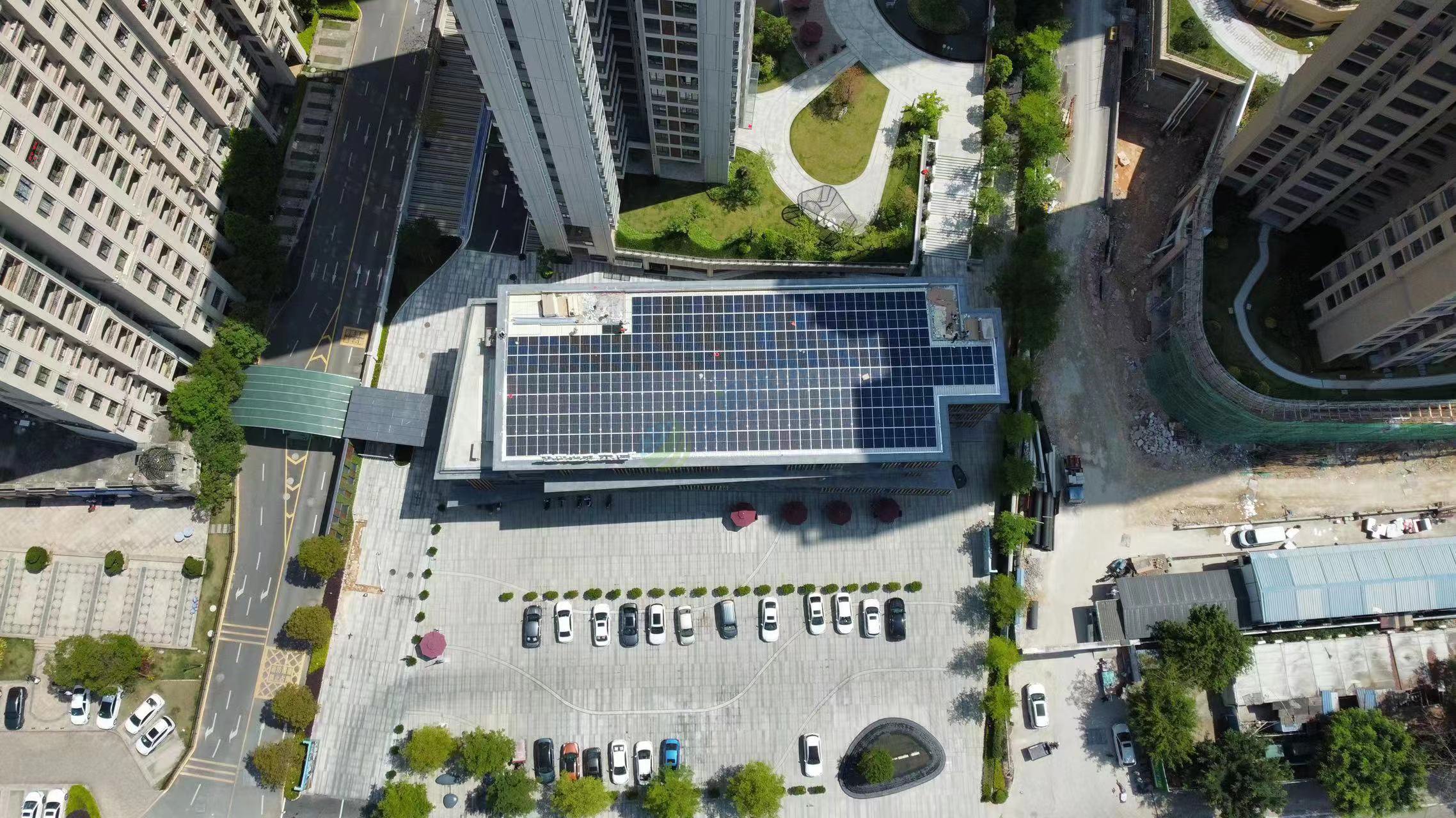 項目概述: 光伏綠色收益,你我一路傳遞。2022年1月5日,浩通光伏公司在惠州市博羅縣羅陽鎮惠博大道城市山麓商業中心 新添一座式業太陽能光伏發電站,電站容量500kw,2022年3月28日竣工并網驗收,投入發電運行,年發電量近34萬度,不僅滿足了用戶夏季的用電需求,斬獲一筆可觀的光伏綠色收益,同時為夏季的酷熱屋頂安上了一道綠色屏障——免費而又美麗的隔熱層,為城市的環保貢獻了一份力量。