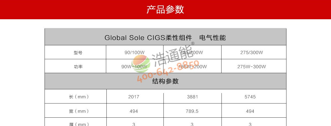 漢能 Global Solar PowerFLEX CIGS柔性太陽能電池組件詳細參數